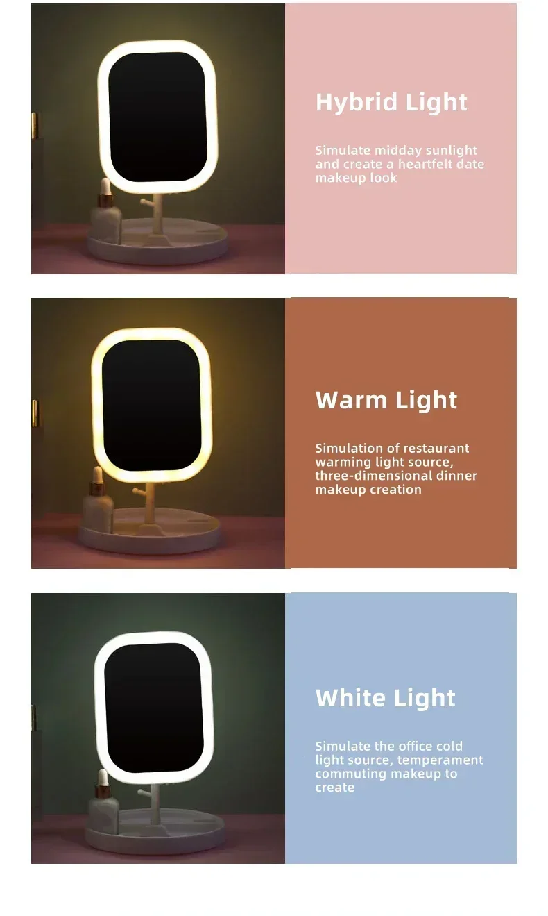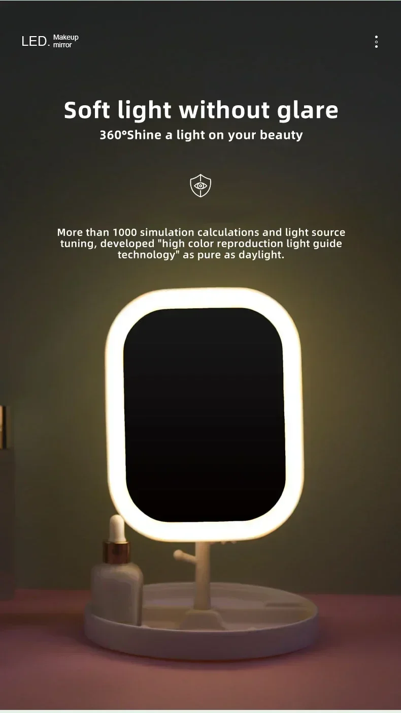 Wyposażone w pierścień świetlny LED sterowany dotykowo, lusterko pozwala włączyć/wyłączyć oświetlenie jednym dotknięciem, a dłuższe przytrzymanie przycisku umożliwia płynną regulację jasności. Możesz wybierać spośród 3 trybów oświetlenia: