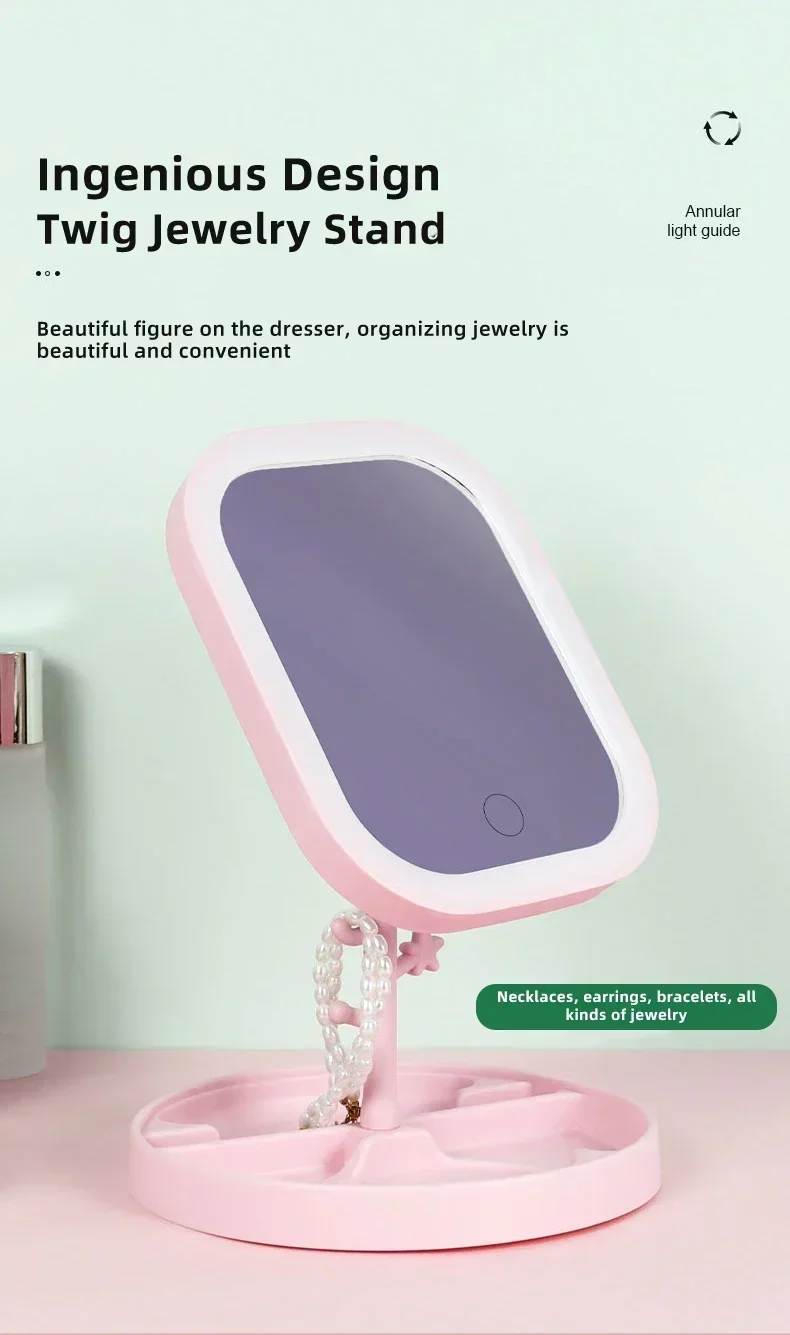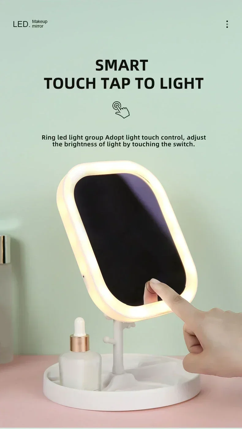 Lusterko kosmetyczne LED z dotykowym sterowaniem – 3 tryby światła, regulacja jasności, składane, ładowanie USB