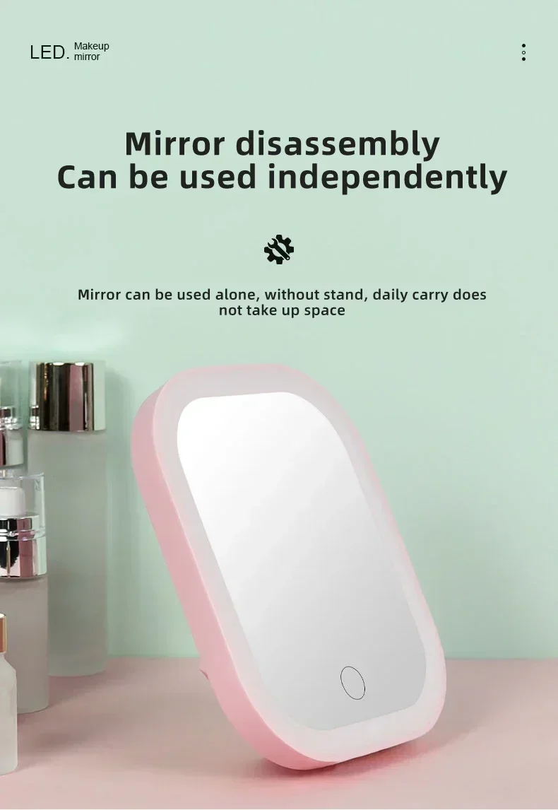 Dzięki wbudowanemu akumulatorowi o dużej pojemności i możliwości ładowania przez USB, lusterko działa bezprzewodowo, zapewniając swobodę i mobilność. Jest lekkie i składane, co sprawia, że łatwo je zabrać w podróż – zmieści się w walizce lub większej torebce.